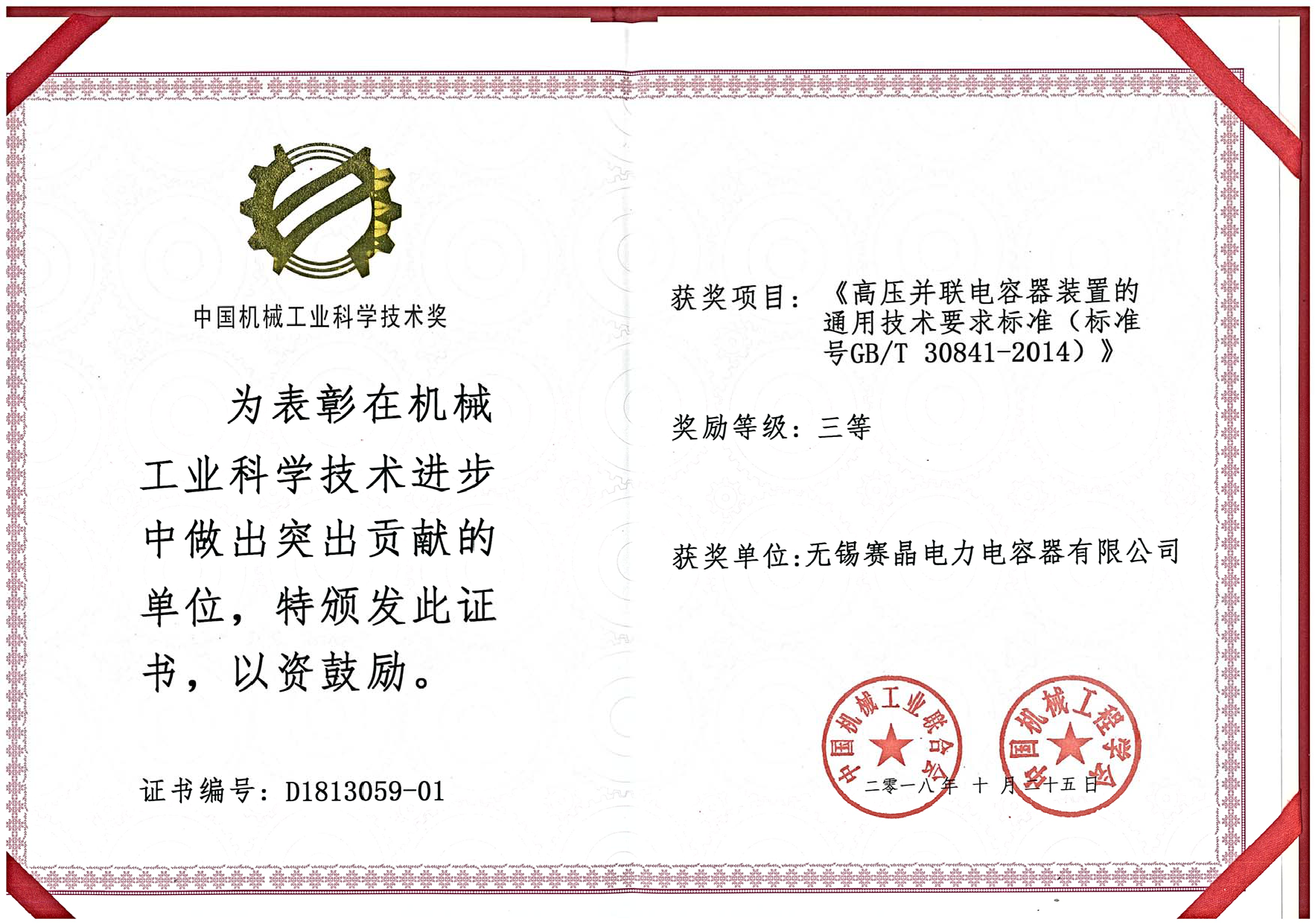 公司目前共申请专利55项,获授权专利37项����� �������Ƴ������������ �������Ƴ����������� �������Ƴ�������,其中5项发明专利,32项����� �������Ƴ������������ �������Ƴ�������实用新型专利。主导完成了����� �������Ƴ������������ �������Ƴ�������《GB/T30841-20����� �������Ƴ������������ �������Ƴ�������14 高压并联电容器装置的通用技术要求》、����� �������Ƴ����������� �������Ƴ����������� �������Ƴ������������ �������Ƴ�������《GB/T 11024.1-2019 标����� �������Ƴ������������ �������Ƴ������������ �������Ƴ������称电压在1000V以上交流电力系统����� �������Ƴ������������ �������Ƴ�������用并联电容器 第1部分:总则》两项国家标准的制修����� �������Ƴ������������ �������Ƴ�������订工作,其中主持制定的标准《GB����� �������Ƴ������������ �������Ƴ������������ �������Ƴ������������ �������Ƴ�������/T30841-2014 高压并联电容器装置的����� �������Ƴ����������� �������Ƴ������������ �������Ƴ������通用技术要求》荣获了中国机械工业科学����� �������Ƴ������������ �������Ƴ������������ �������Ƴ������������ �������Ƴ�������技术奖三等奖、电工标准-正泰创新奖一等����� �������Ƴ������������ �������Ƴ�������奖。2016年获评国家级高����� �������Ƴ������������ �������Ƴ�������新技术企业并连续保持;201����� �������Ƴ����������� �������Ƴ�������7年获评苏南国家自主创新示范区瞪羚����� �������Ƴ������������ �������Ƴ������������ �������Ƴ������������ �������Ƴ�������企业,获评惠山区智能制造示����� �������Ƴ������������ �������Ƴ������������ �������Ƴ������������ �������Ƴ�������范工程-智能车间和无锡市智能车间荣誉称号;2����� �������Ƴ������������ �������Ƴ������������ �������Ƴ������������ �������Ƴ�������018年获评国家级、省级两化融合管理体系贯标试����� �������Ƴ������������ �������Ƴ����������� �������Ƴ�������点;2019年成功申报无锡市企业技术中心。