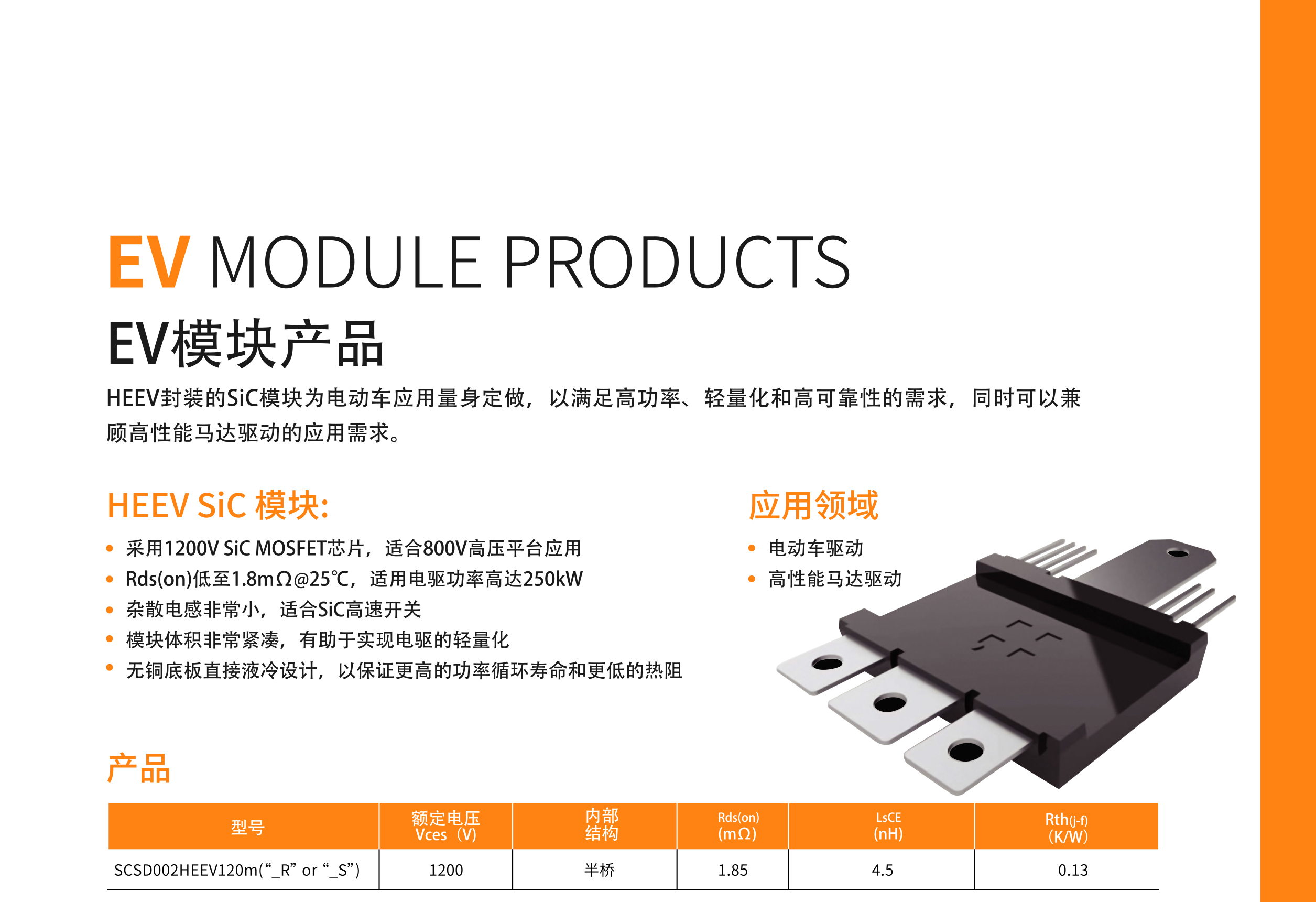 HEEV SiC模块����� ����������� �������Ƴ������������ �������Ƴ��������Ƴ�������,为电动����� �������Ƴ������������ �������Ƴ������������ �������Ƴ�������车应用量身定做,以满足高功率、轻量化����� �������Ƴ����������� �������Ƴ������������ �������Ƴ������������ ������������ �������Ƴ����������� �������Ƴ������������ �������Ƴ�������Ƴ�������和高可靠性的����� �������Ƴ������������ �������Ƴ������������ �������Ƴ�������需求。同时,也兼顾高性能马达驱动��������� �������Ƴ������������ �������Ƴ������������ �������Ƴ�������� �������Ƴ�������的应用需求。